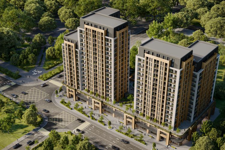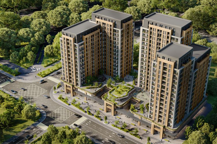 Архитектурная 3D-визуализация многоквартирного жилого комплекса, расположенного в городе Душанбе, выполнена по заказу строительной компании с целью продвижения и рекламы жилья.